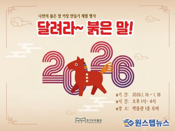 원스텝뉴스 천규영 기자 | 경기문화재단 경기도박물관(관장직무대행 박본수)은 병오년 새해를 맞아 관람객을 위한 체험형 교육행사 〈달려라~ 붉은 말!〉을 1월 16일부터 18일까지 3일간 박물관 로비에서 운영한다.