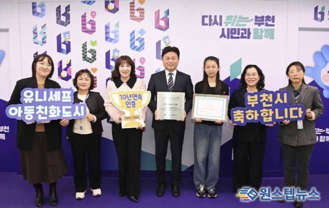 원스텝뉴스 이병희 기자 | 부천시는 유니세프 한국위원회로부터 ‘유니세프 아동친화도시’ 인증을 갱신했다고 14일 밝혔다. 이번 인증은 2019년 12월 최초 인증에 이어 자격을 유지한 것으로, 유효기간은 2029년 12월 30일까지다.