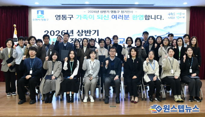 원스텝뉴스 이병희 기자 | 수원시 영통구는 지난 15일 영통구청 대회의실에서 2026년 상반기 정기인사에 따른 6급 팀장 발령자 및 승진자 32명을 대상으로 임용장 교부식을 개최했다.