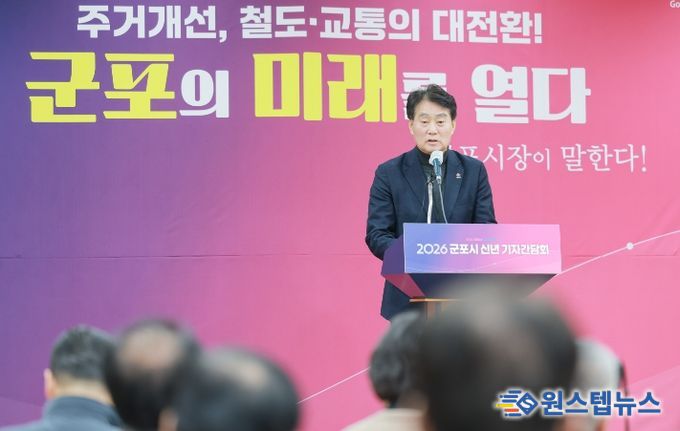 원스텝뉴스 이병희 기자 | 군포시는 1월 15일 시청에서 기자간담회를 열고 2026년 시정운영 목표와 주요 추진 과제를 설명했다.