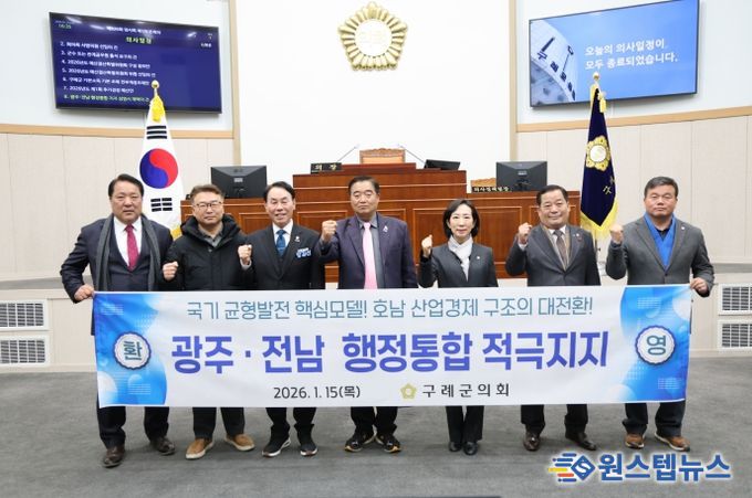 원스텝뉴스 이병희 기자 | 구례군의회는 지난 1월 15일, 제326회 임시회 제1차 본회의에서 「광주·전남 행정통합 지지 성명서」를 채택했다고 밝혔다.
