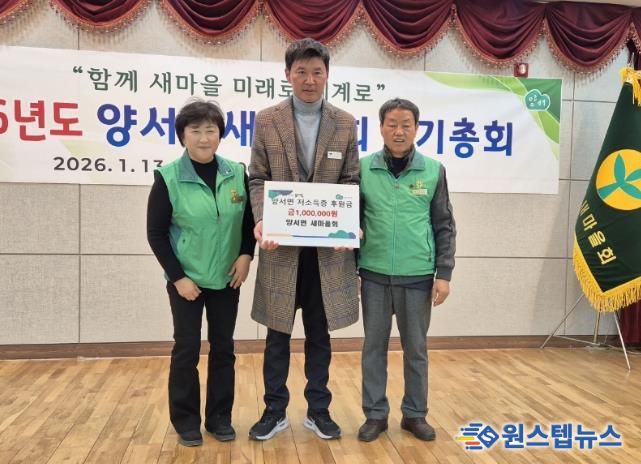 남평우·이윤숙 양서면 새마을회장은 “회원 한 사람 한 사람의 손길이 모여 마련한 성금인 만큼, 이웃들에게 희망과 위로가 되길 바란다”며 “앞으로도 지역과 함께하는 나눔 활동을 이어 나가겠다”고 말했다.