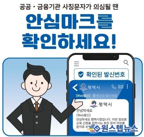 원스텝뉴스 이병희 기자 | 평택시는 1월 16일부터 기관에서 발송하는 문자메시지에 시 로고와 안심 마크를 표시하는 ‘안심문자서비스(RCS, Rich Communication Services)’를 도입 운영한다고 밝혔다.