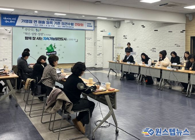 시는 16일 시청 중회의실에서 광명사랑화폐 가맹점 등록 기준 가운데 ‘연매출 기준’ 조정에 관한 의견 수렴 간담회를 개최했다.