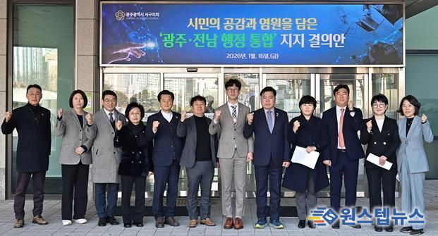 임의원은 “광주광역시 서구의회는 지역 경쟁력을 확대하려는 이번 행정 통합의 방향성에 대해 적극 찬성하며, 주민의 공감대와 신뢰라는 단단한 토대 위해서 추진되기기를 바란다.”라고 강조했다.