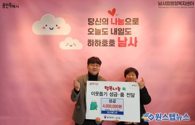처인구 남사읍은 13일 화사해다육에서 성금 400만원을 기탁했다고 밝혔다.