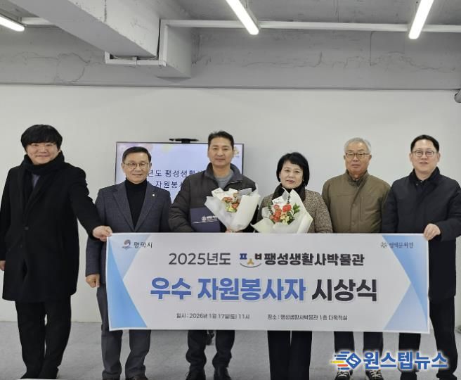 원스텝뉴스 이병희 기자 | 팽성생활사박물관은 2026년 1월 17일 팽성생활사박물관 1층 다목적실에서 ‘2025 팽성생활사박물관 우수 자원봉사자 시상식’을 열고, 한 해 동안 헌신적인 봉사활동을 펼친 자원봉사자들에게 표창장과 감사 선물을 전달했다.