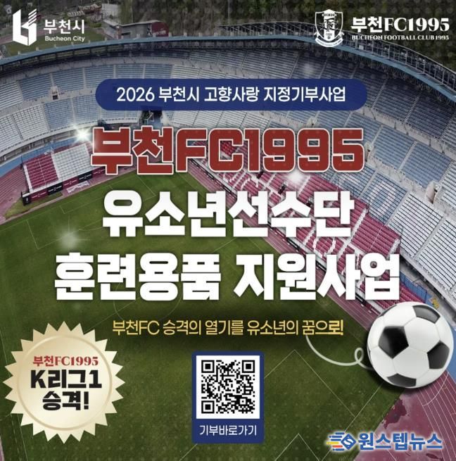 이번 지정기부사업은 10월까지 모금을 진행하며, 대상은 ‘부천FC1995 유소년 선수단 훈련용품 지원’(2천만 원)과 ‘맘(Mom)편한 택시 고향사랑 더하기’(3천만 원) 총 2개 사업이다.