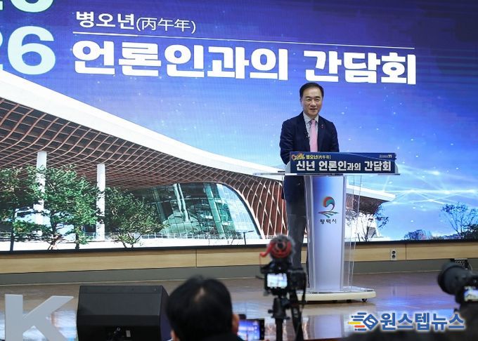 원스텝뉴스 이병희 기자 | 평택시가 2026년 병오년을 맞아 신년 언론인 간담회를 19일 열어 새해 주요 시정 방향을 밝혔다. 이번 간담회에는 100여 명의 언론인과 정장선 평택시장을 비롯한 간부 공무원이 참석했으며, 주요성과 발표, 2026년 주요 시책 설명, 질의응답 순으로 진행됐다.