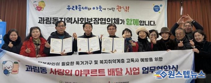 원스텝뉴스 이병희 기자 | 시흥시 과림동 지역사회보장협의체는 지난 1월 19일 ㈜한국야쿠르트 역곡점과 복지 취약계층 안부 확인을 위한 ‘사랑의 요구르트 배달’ 사업 추진 업무협약을 체결했다.