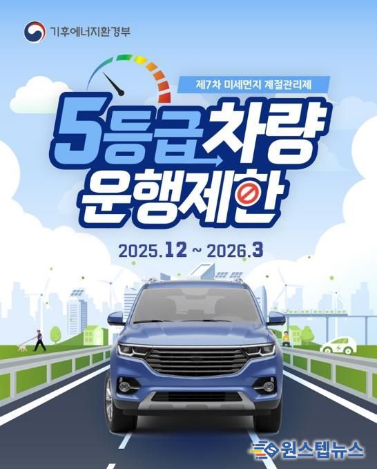 원스텝뉴스 이병희 기자 | 파주시는 제7차 계절관리제 기간인 2025년 12월부터 2026년 3월까지 배출가스 5등급 차량에 대한 단속을 실시하고 있다.