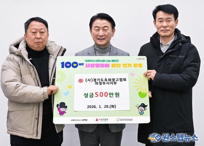 원스텝뉴스 이병희 기자 | 의정부시는 1월 20일 (사)경기도옥외광고협회 의정부시지부가 ‘100일간 사랑릴레이 배턴 잇기’에 동참해 성금 500만 원을 기탁했다고 밝혔다.