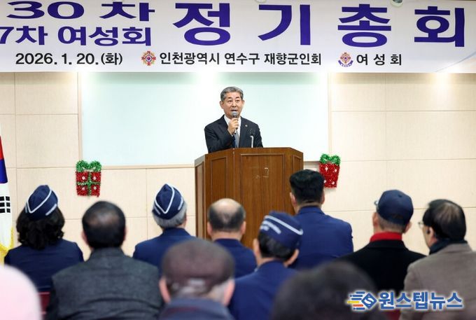 원스텝뉴스 이병희 기자 | 인천광역시의회 정해권 의장(국·연수구1)은 20일 인천시 연수구 보훈회관에서 열린 ‘2026년 제30차 연수구 재향군인회 및 제27차 연수구 재향군인회 여성회 정기총회’에 참석해 회원들을 격려했다.