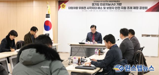 원스텝뉴스 이병희 기자 | 경기도의회 건설교통위원회 허원 위원장(국민의힘·이천2)은 19일 경기도의회 중회의실에서 '경기도 인공지능(AI) 기반 대형차량 우회전 사각지대 해소 및 보행자 안전 지원 조례' 제정을 위한 공청회를 개최했다.