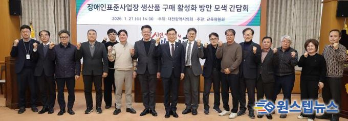 원스텝뉴스 이병희 기자 | 대전시의회는 21일 시의회 3층 소통실에서 '장애인표준사업장 생산품 구매 활성화 방안 모색 간담회'를 개최하고, 공공기관의 장애인표준사업장 생산품 구매율을 높이기 위한 정책적·제도적 개선 방안을 논의했다.