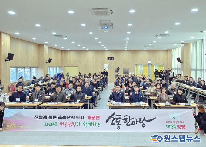 이날 행사는 오전 9시 30분부터 개군면 복지회관 별관 2층에서 열렸으며, 전진선 양평군수, 임병희 개군면장, 도·군의원, 관내 기관·단체장, 개군면 주민 등 100여 명이 참석해 열띤 분위기 속에서 진행됐다.