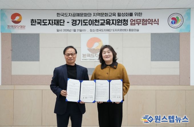 원스텝뉴스 이병희 기자 | 이천교육지원청은 1월 21일 한국도자재단과 이천시 관내 문화예술교육사업 및 학교교육프로그램 활성화를 위한 업무협약을 체결했다.
