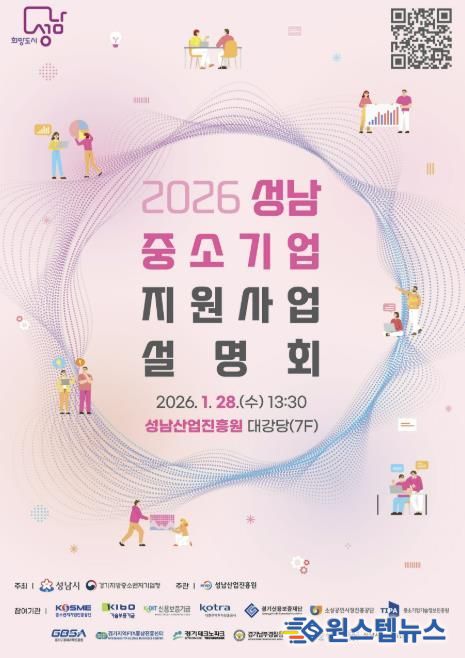 원스텝뉴스 이병희 기자 | 성남시는 성남산업진흥원과 함께 오는 1월 28일 성남산업진흥원 대강당(정자동 킨스타워 7층)에서 ‘2026 성남 중소기업 지원사업 설명회’를 개최한다.