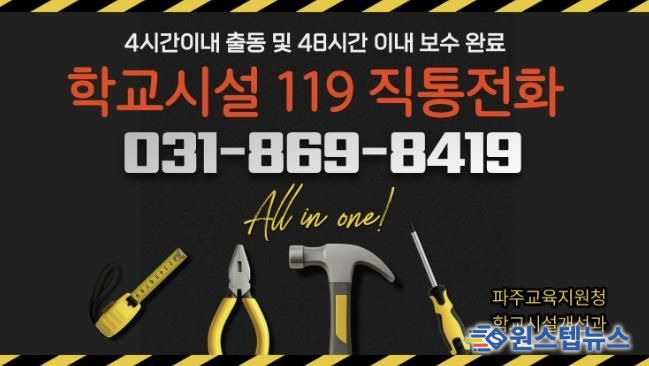 전선아 교육장은 “‘학교시설 119’는 학교가 행정 업무 대신 교육 활동에 전념할 수 있도록 돕는 현장 중심 행정의 핵심”이라며 “파주만의 신속하고 체계적인 시설 관리 모델을 정착시켜 안전한 교육 환경을 만들겠다”고 강조했다.