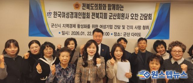 원스텝뉴스 이병희 기자 | 전북도의회 김동구 의원(군산2)은 22일 한국여성경제인협회 전북지회 군산회원사들과 간담회를 개최해 기업 현안 및 애로사항을 청취하는 시간을 가졌다.