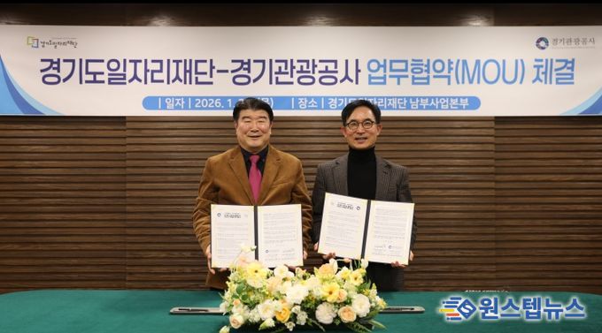 원스텝뉴스 이병희 기자 | 경기도일자리재단과 경기관광공사는 22일 경기도일자리재단 남부사업본부에서 ‘경기북부 관광 활성화 및 유연근무 확산을 위한 업무협약(MOU)’을 체결했다.