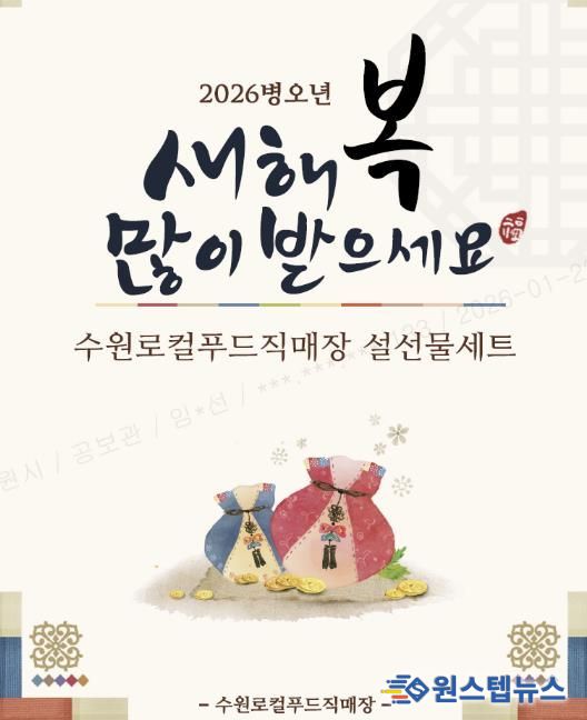 원스텝뉴스 이병희 기자 | 수원로컬푸드직매장이 설 명절을 맞아 1월 26일부터 2월 9일까지 우리 농산물로 구성된 ‘설 명절 선물 세트’ 사전예약 판매를 한다. 택배 신청은 2월 9일 오전까지 할 수 있고, 배송은 2월 9~13일 이뤄진다.