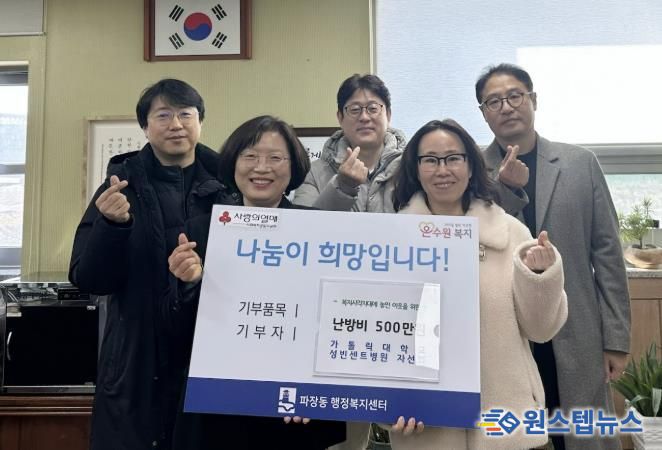원스텝뉴스 이병희 기자 | 수원시 장안구 파장동은 지난 22일 가톨릭대학교 성빈센트병원 자선회로부터 난방비 500만원을 후원받았다고 밝혔다.
