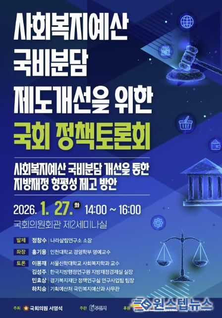 이에 따라 이번 토론회에서는 현행 사회복지예산의 국비·지방비 분담 구조가 지역별 재정 여건과 복지 수요의 차이를 충분히 반영하지 못하고 있는 점을 점검하고, 지방재정의 형평성을 높일 수 있는 합리적 제도개선 방향을 논의할 예정이다.