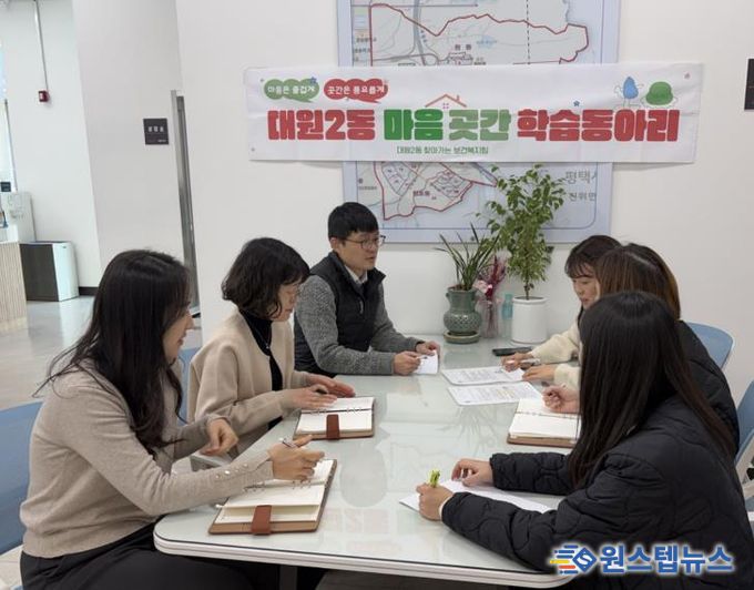 ‘마음곳간 학습동아리’는 대원2동 찾아가는 보건복지팀 팀원 6명으로 구성되어 매월 1회 정기적으로 운영되며, 현장 중심의 실무 역량 강화를 목표로 다양한 주제를 선정해 학습과 토론을 이어갈 예정이다.