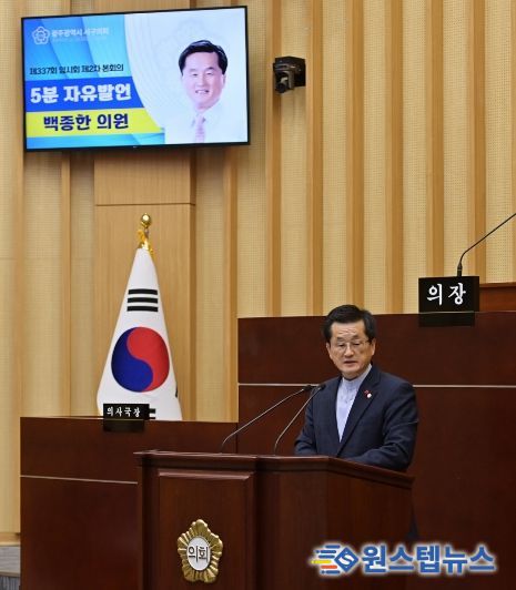 원스텝뉴스 이병희 기자 | 광주 서구의회 백종한 의원(화정3동, 화정4동, 풍암동)이 23일 제337회 임시회 제2차 본회의에서 5분자유발언을 통해 재난·안전·민생·복지 현장에서 근무해 온 공직자들의 노고를 치하했다.