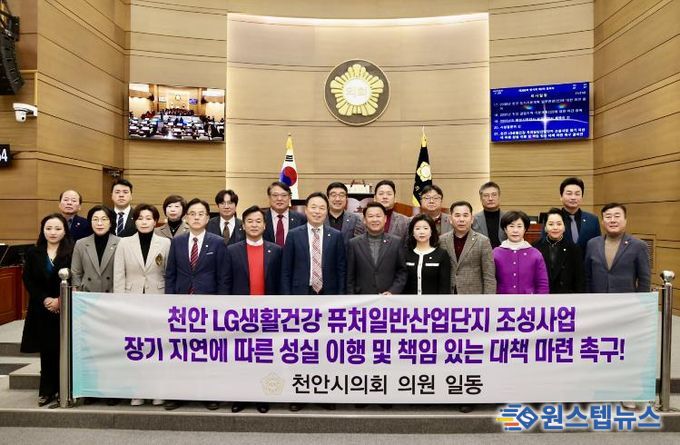 원스텝뉴스 이병희 기자 | 천안시의회는 23일 열린 제286회 임시회 2차 본회의에서 권오중 의원(국민의힘, 중앙동·일봉동·신안동)이 대표발의한 '천안 LG생활건강 퓨처일반산업단지 조성사업 장기 지연에 따른 성실 이행 및 책임 있는 대책 마련 촉구 결의안'을 만장일치로 채택했다고 밝혔다.