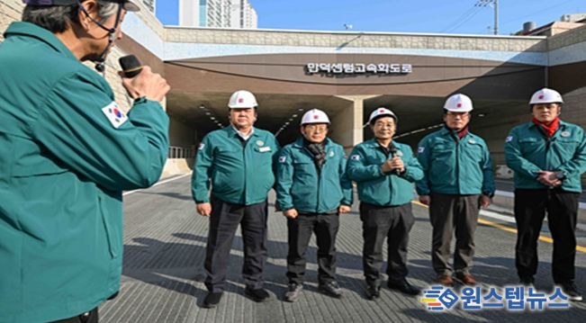 원스텝뉴스 이병희 기자 | 부산광역시의회 해양도시안전위원회(위원장 최도석)는 제333회 임시회를 앞두고 1월 23일, 다음 달 개통을 앞둔 내부순환(만덕~센텀) 도시고속화도로 건설 현장을 방문해 개통 준비 상황을 점검했다.