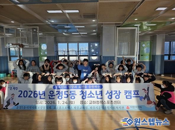 원스텝뉴스 이병희 기자 | 파주시 운정5동은 지난 24일, 지역 내 유관기관과의 성공적인 협업으로 초등학교 4~6학년 청소년 30명을 위한 '2026년 청소년 성장캠프'를 마무리하며, 미래 세대에게 잊지 못할 경험을 선물했다고 밝혔다.