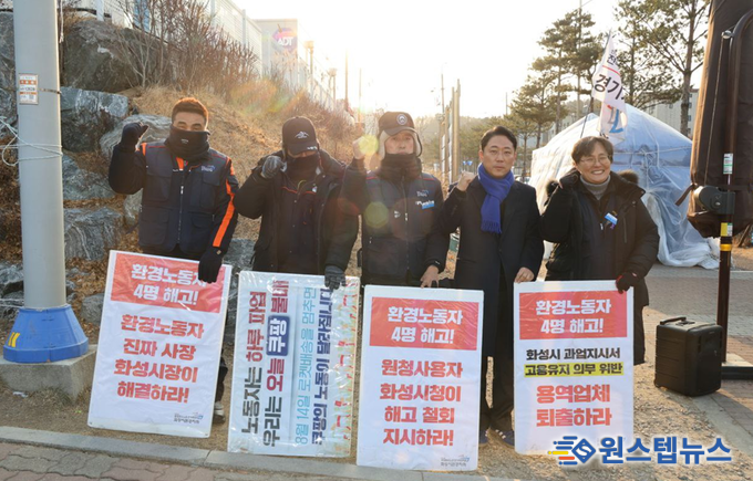 특히 정명근 화성시장이 “신년인사회에서 환경노동자 2명은 복귀가 가능하고 2명은 안된다. 업체들이 하는 이야기를 똑같이 하고 있다”며 “공무원들이 지금 일하고 있는 것 조차도 모르고서는 사용자들 이야기만 듣고 그것을 신년인사회에서 할 이야기는 아니다”라고 문제점을 지적하였다.