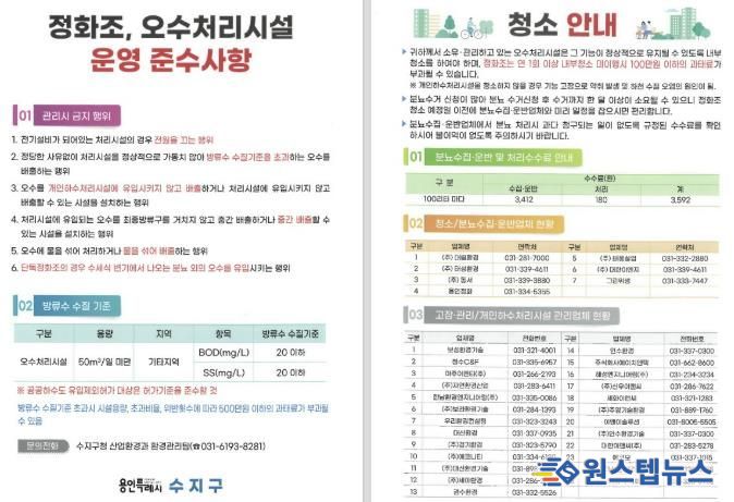 이번 안내문에는 시민들이 꼭 알아야 할 ▲정화조 관리 시 주의사항 ▲정화조·분뇨 청소 요금 기준 ▲허가받은 청소·수거 업체 현황 ▲방류수 수질 기준과 관리 요령 등이 담겼다.