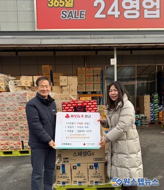 원스텝뉴스 이병희 기자 | 고양특례시 일산동구 중산2동은 ‘자유로마트 중산점’이 설 명절을 맞아 선물세트 40개를 기부하며 이웃사랑을 실천했다고 27일 밝혔다.