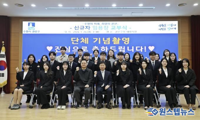 원스텝뉴스 이병희 기자 | 수원시 권선구는 지난 26일, 권선구청 2층 대회의실에서 신규 공직자 27명이 참석한 가운데 임용장 수여식을 개최했다.