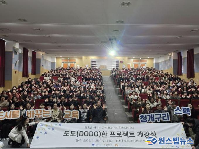 원스텝뉴스 이병희 기자 | 수원특례시는 28일 수원시 평생학습관 대강당에서 ‘2026년 도도(DODO)한 프로젝트’ 강사양성과정 개강식을 개최했다. 개강식에는 청개구리교실 학부모 강사양성과정 합격자 200여 명이 참석했다.