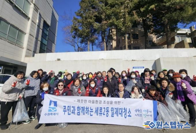 원스텝뉴스 이병희 기자 | 수원시 권선구 세류2동 행정복지센터에서는 새해를 맞이하여 지난 28일 통장, 직원, 환경관리원 등 50여 명이 모여 새봄맞이 수원천 대청소를 실시했다.