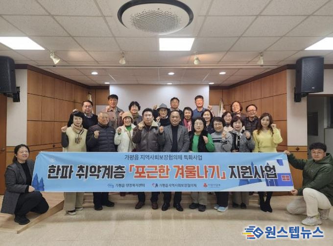 원스텝뉴스 이병희 기자 | 가평군 가평읍 지역사회보장협의체는 지난 27일 겨울철 한파로 어려움을 겪고 있는 취약계층 지원을 위한 ‘포근한 겨울나기’ 사업을 실시했다.