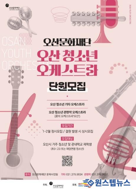 모집 대상은 오산시에 거주하는 초등학교 3학년부터 고등학교 3학년까지의 아동·청소년 또는 해당 연령대 청소년으로, 악기 교육 경험이 없어도 지원이 가능하다. 재단은 악기 경험보다 꾸준한 활동 의지와 성실성을 중점적으로 평가해 단원을 선발할 계획이며, 선발된 단원은 기초부터 체계적인 악기 교육을 받을 수 있다.