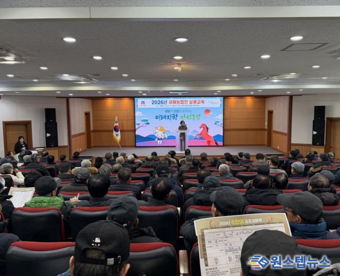 2026년 새해농업인 실용교육은 농정시책, 토양관리, 수찬미 재배기술 등 총 12품목 12과목으로 구성되어, 농업 트렌드 변화와 현장 수요를 반영한 실용 중심의 프로그램으로 진행됐다.