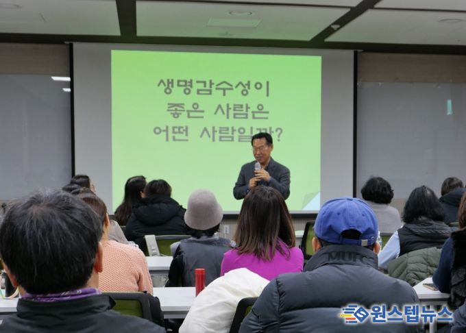 원스텝뉴스 이병희 기자 | 광명시 환경교육센터는 지난 28일 광명시 평생학습원 104호에서 김성호 생태작가를 초청해 ‘생명감수성의 시간’ 특강을 성황리에 개최했다.
