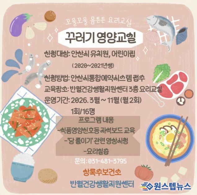 원스텝뉴스 이병희 기자 | 안산시 상록수보건소 반월건강생활지원센터는 오는 3월부터 11월까지 관내 6~7세 아동을 대상으로 ‘꾸러기 영양교실’을 운영한다고 30일 밝혔다.