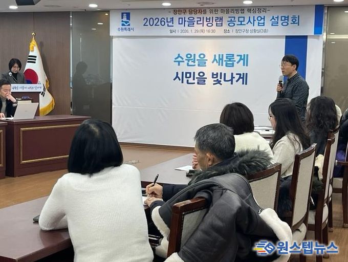 원스텝뉴스 이병희 기자 | 수원시 장안구는 지난 29일, 주민자치 담당자와 주민자치회 위원을 대상으로 주민 주도로 마을 현장 문제를 해결하는 ‘2026 마을리빙랩 공모사업’의 이해를 돕기 위한 설명회를 열었다.