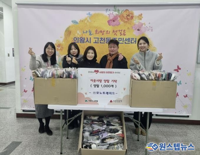 이번에 기탁된 양말은 의왕시 고천동 소재 ㈜모노트레이드에서 전달한 것으로 관내 저소득 가구와 독거노인 등 도움이 필요한 이웃들에게 배부될 예정이다.