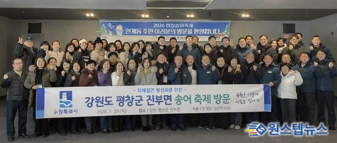 원스텝뉴스 이병희 기자 | 수원시 팔달구 인계동은 지난 29일, 인계동 주민자치회 등 단체원 40여 명과 함께 자매결연지 평창군 진부면에 방문, 평창송어축제에 참여하여 선진적인 축제 운영 사례를 견학하고 자매결연지 간의 교류 활성화에 나섰다고 밝혔다.