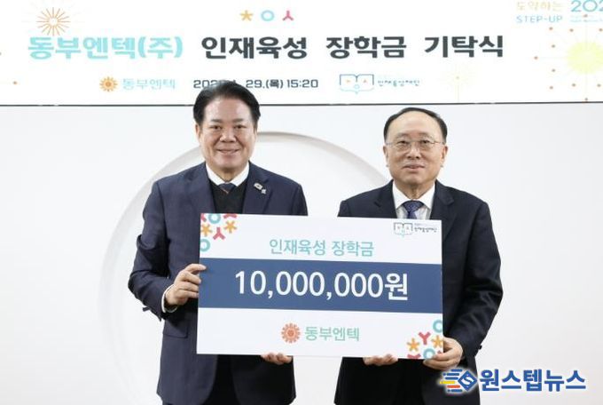 동부엔텍은 지난 2023년과 2024년에 이어 올해에도 장학금을 기탁하며, 이번 기탁까지 총 세 차례에 걸쳐 재단과 인연을 이어오고 있다. 올해 전달된 장학금 1천만원은 재단의 희망장학금으로 활용되어, 경제적 어려움 속에서도 학업에 매진하는 관내 학생들을 지원하는데 쓰일 예정이다.