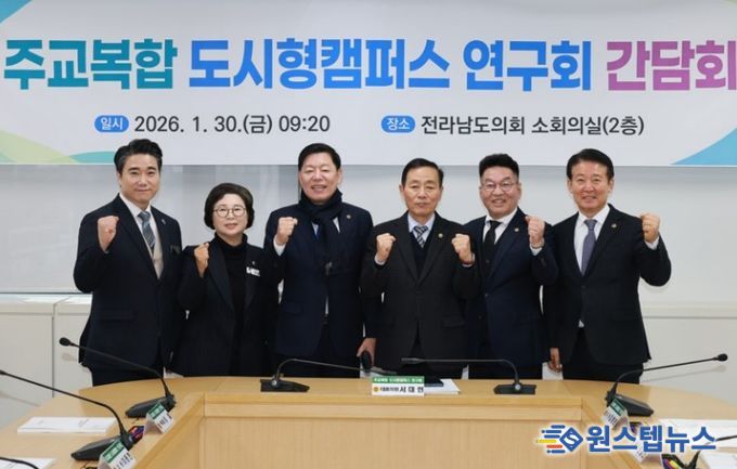 원스텝뉴스 이병희 기자 | 전라남도의회 주교복합 도시형캠퍼스 연구회 서대현 대표의원은 1월 30일 전라남도의회 소회의실에서 간담회를 개최했다.