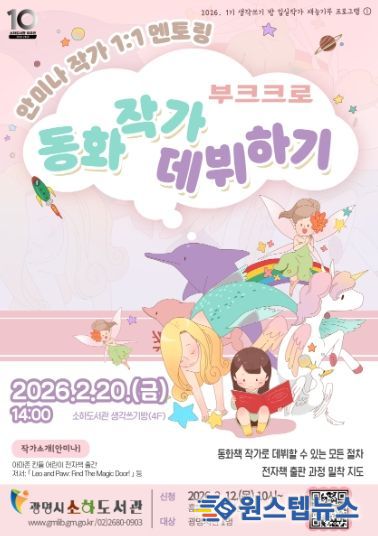 원스텝뉴스 천규영 기자 | 광명시 소하도서관은 2월부터 ‘생각쓰기방 입실작가 재능기부 프로그램’을 운영한다.